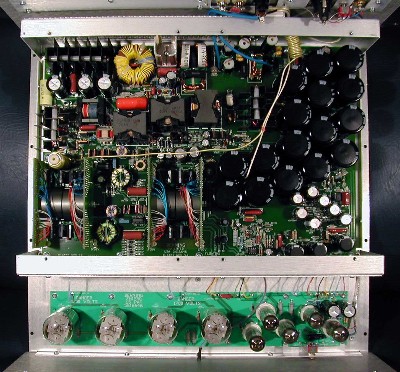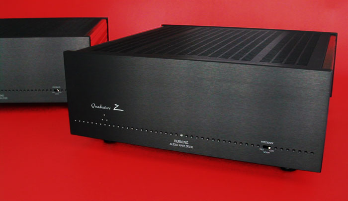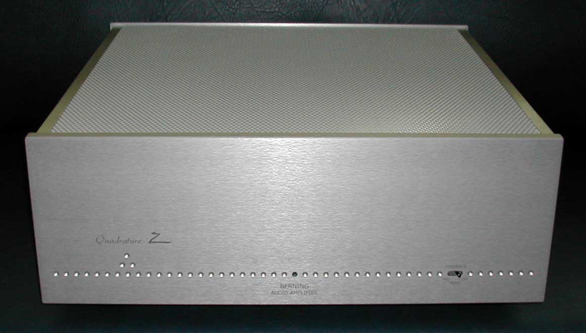 Like other recent Berning products, the Quadrature Z incorporates a fully regulated, resonant-type, switching power supply. The use of regulated switching power-supplies in Berning amplifiers over the years has resulted in these amplifiers obtaining a reputation for having better control in the bass than tube amplifiers with conventional power supplies. The use of these supplies has also resulted in unusually lightweight and compact amplifiers for their power capability because there was no line-frequency power-transformer in these units. Some people with traditional ideas found it difficult to believe that improved bass reproduction could be obtained with a lighter-weight design.